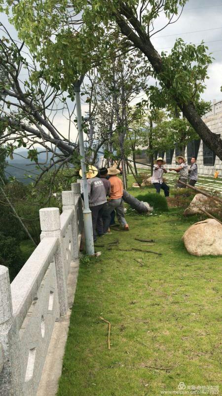 罗源凤梅生态公园遭受8号台风“玛莉亚”的严重破坏。台风尚未走远,绿艺人的身影已出现在公园中。战天斗地,虽苦犹甜。