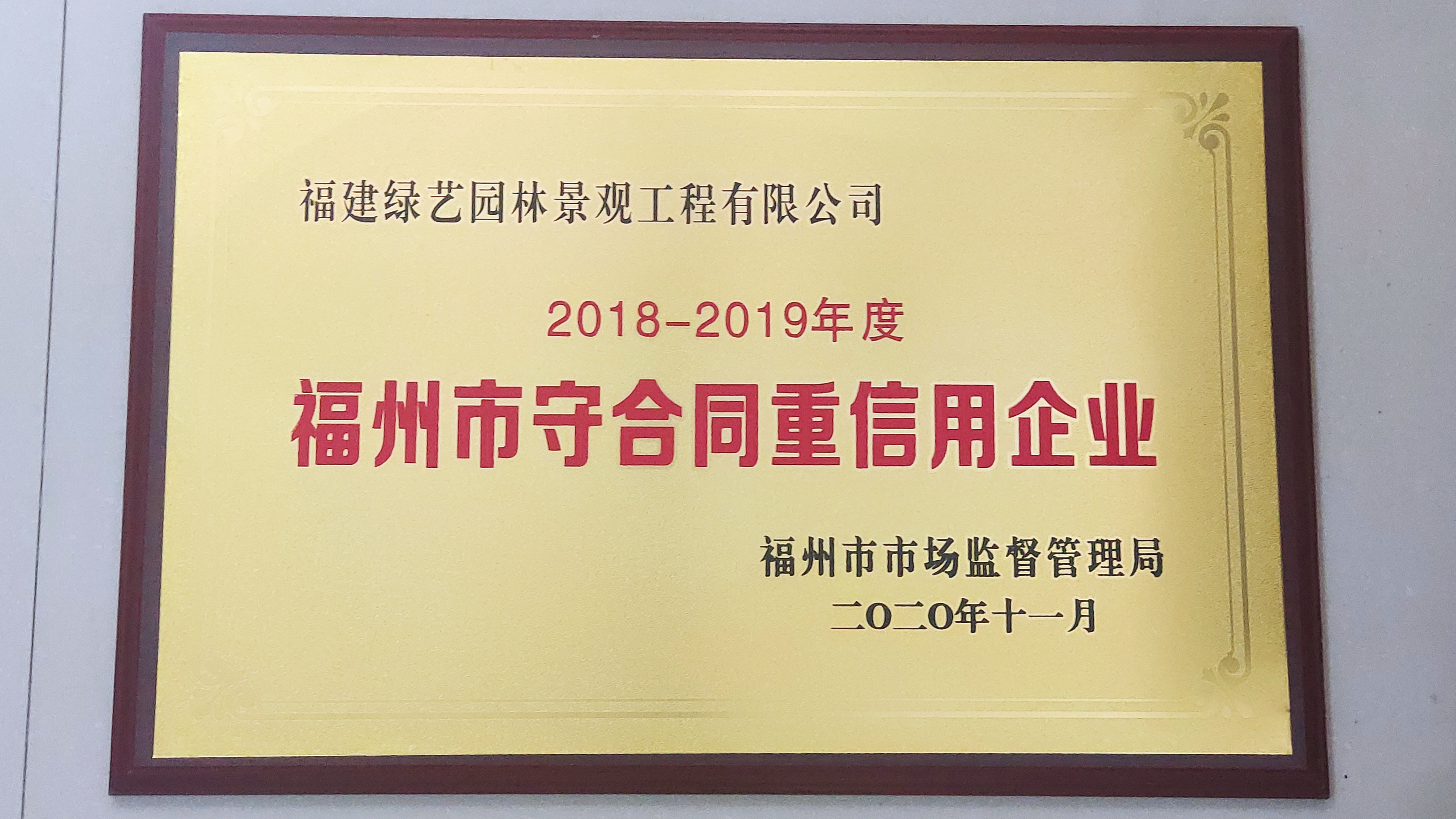 福州市守合同重信用企业